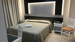 l Grand Hotel Montesilvano, elegante edificio di 7 piani con 150 camere di varie tipologie, matrimoniali/doppie, triple, quadruple con letto a castello. Tutte le tipologie sono dotate di servizi privati con vasca (doccia su richiesta), aria condizionata autonoma, cassaforte, balcone, tv color Led, minifrigo, asciugacapelli a parete, porte con apertura a scheda magnetica. Il Grand Eurhotel, edificio di 9 piani, 130 camere/appartamenti rinnovati in stile moderno. Sono tutti dotati di terrazzo, frigo, tv color, bagno privato con doccia, aria condizionata autonoma, cassaforte, asciugacapelli da parete.